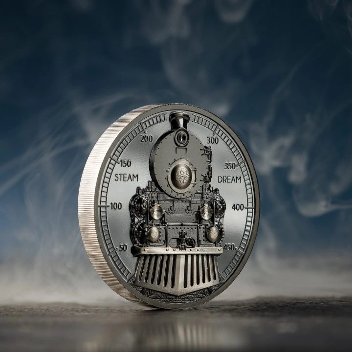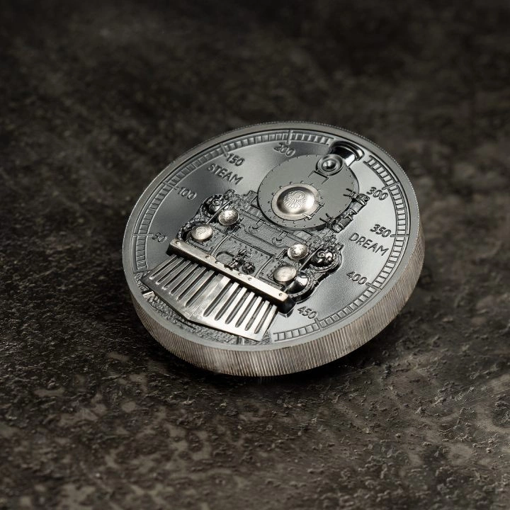 Cook Islands: Train - Steam Dream 2 uncje Srebra 2023 Black Proof High Relief to niezwykle ciekawy egzemplarz, który został wykonany z wielką dbałością o każdy szczegół. To piąty walor z serii "The Journey". Jeden z najbardziej niezwykłych wynalazków ludzkości zapoczątkował postęp, przygodę i ekscytację – lokomotywa parowa.