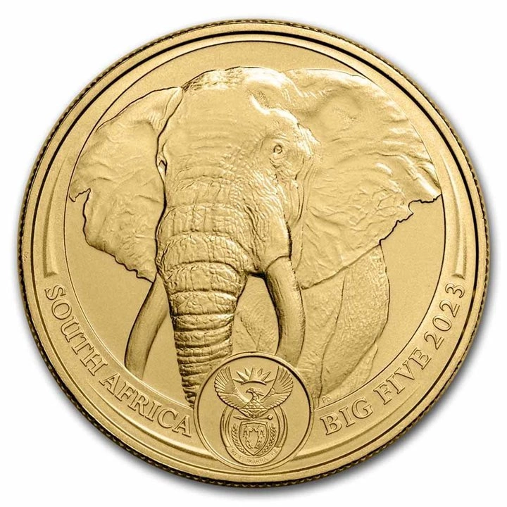 Awers ukazuje głowę Słonia afrykańskiego oraz napis "SOUTH AFRICA" , "BIG FIVE 2023" i herb RPA.