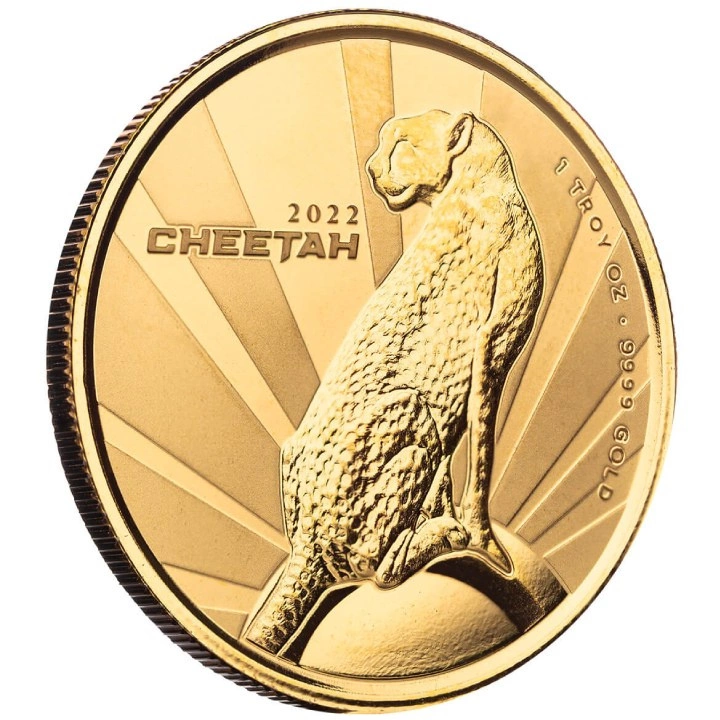 Cameroon: Cheetah 1 uncja Złota 2022 Proof to produkt przedstawiający geparda, czyli najszybszego ssaka lądowego na Ziemi. Jest on drapieżnikiem, mięsożercą, który poluje na inne zwierzęta ważące do 40 kilogramów.