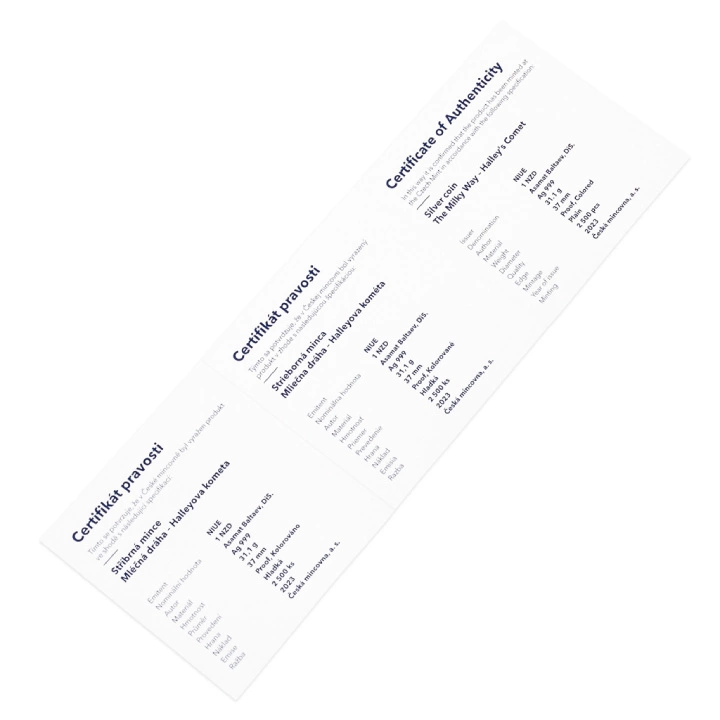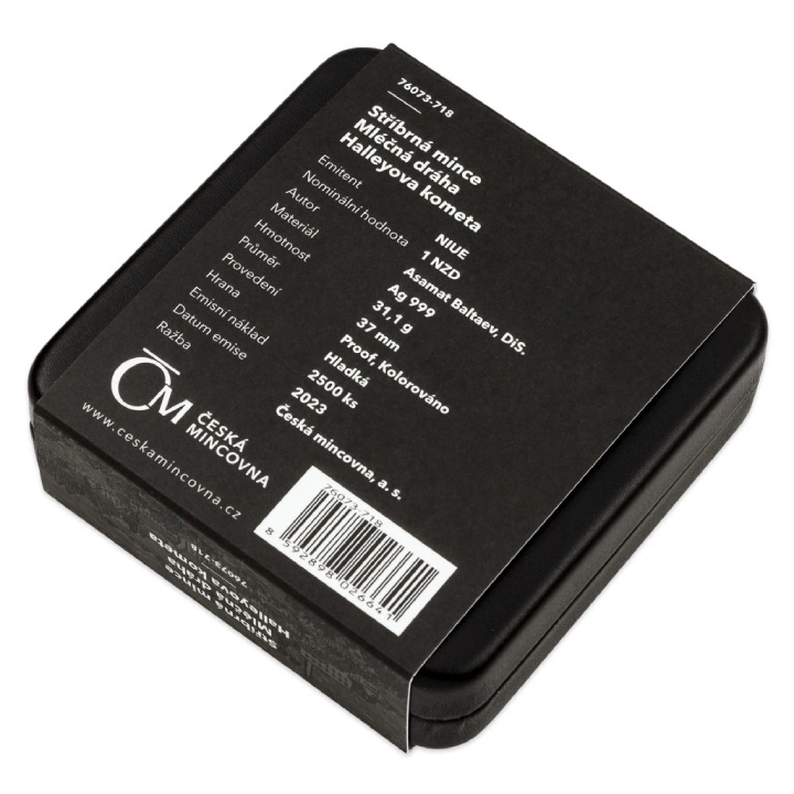 Niue: The Milky Way - Halley's Comet kolorowany $1 Srebro 2023 Proof jest kolejną monetą z serii "The Milky Way". Walor dedykowany jest pierwszej zidentyfikowanej komecie krótkookresowej. Nazwa pochodzi od nazwiska astronoma Edmonda Halleya, który na początku XVIII wieku badał zapiski o pojawianiu się komet z lat 1456–1682 i w 1705 i dzięki temu przewidział ponowne pojawienie się tej komety w 1758 roku.