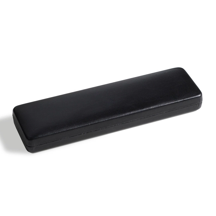 Produkt wykonano z metalu, który został pokryty czarną, gładką skórą ekologiczną. We wnętrzu znajduje się czarna wyściółka z miejscem na monety. Pokrywa od środka została wykończona satynową, jasną tkaniną, która dodaje całości szyku i elegancji oraz sprawia, że numizmaty prezentują się w etui jeszcze bardziej okazale. Producentem etui jest firma Leuchtturm.