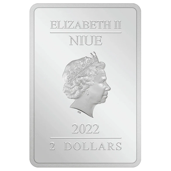 Awers srebrnej monety przedstawia portret Królowej Wielkiej Brytanii Elżbiety II, projektu Ian'a Rank- Broadley'a, napis "NIUE" wraz z informacją o wartości nominalnej i roku bicia monety.