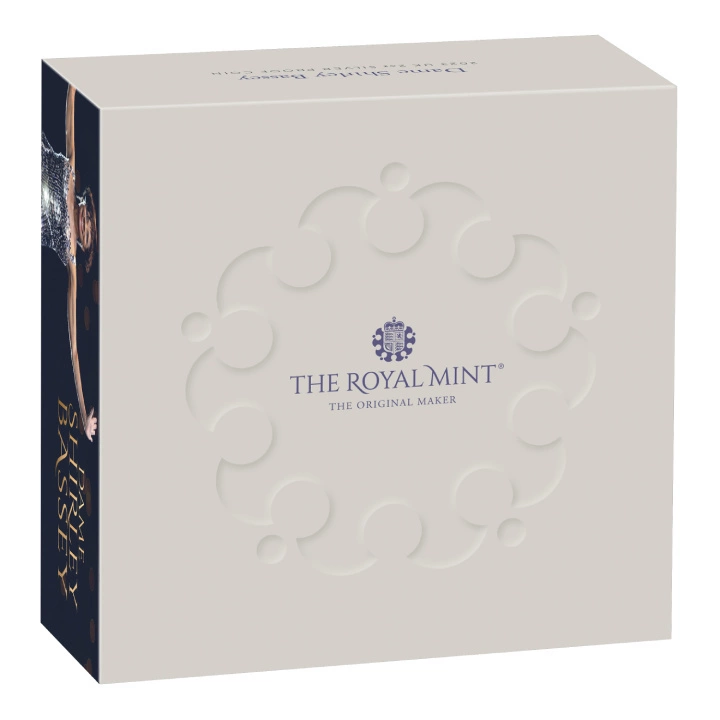 Srebrna monetaDame Shirley Bassey 2 uncje Srebra 2023 Proof prezentuje słynną, walijską piosenkarkę Dame Shirley Bassey, która jest znana głównie z wykonania piosenek tytułowych do filmów o Jamesie Bondzie.