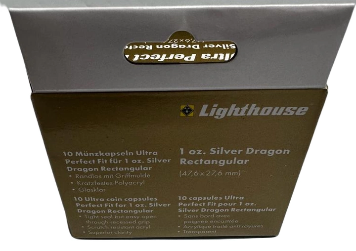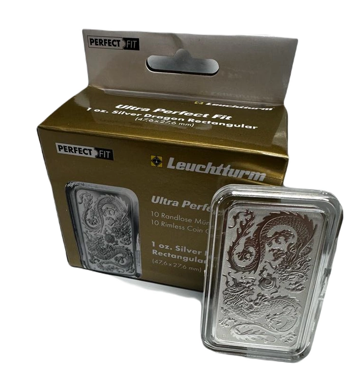 Plastikowe kapsle Ultra Perfect Fit są zaprojektowane do przechowywania prostokątnych monet 1 uncjowych złotych i srebrnych Dragon, o wymiarach 47,6 x 27,6 mm. Kapsle te zostały wykonane z wysokiej jakości materiału - akrylu, który jest materiałem odpornym na zarysowania i w pełni krystalicznym, dzięki czemu moneta jest perfekcyjnie zabezpieczona przed zarysowaniem, a jednocześnie pozostaje w pełni widoczna.
