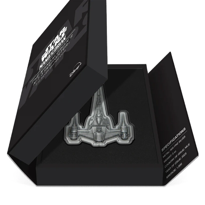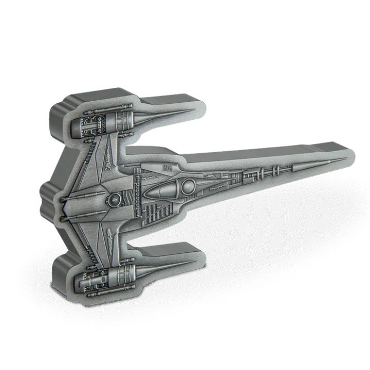 Niue: Star Wars The Mandalorian - The Mandalorian's N-1 Starfighter 3 uncje Srebra 2023 Antiqued Shaped Coin