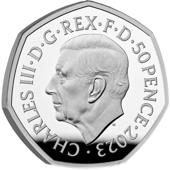 Awers ukazuje podobiznę króla Wielkiej Brytanii Karola III oraz nominał i rok, według projektu Martin'a Jennings'a.