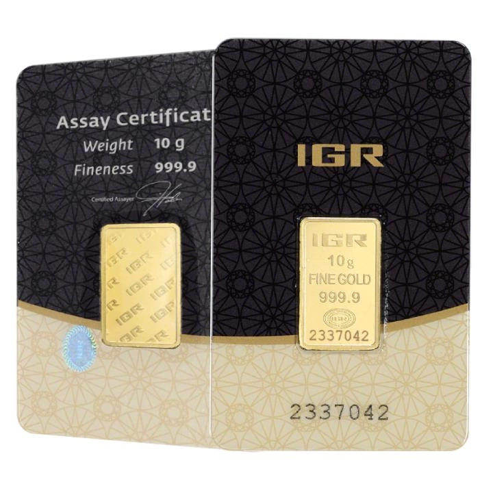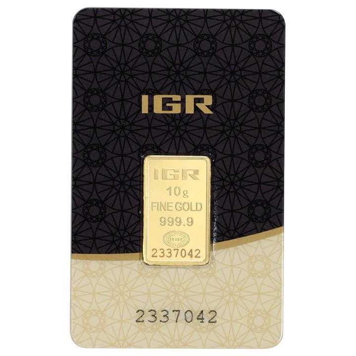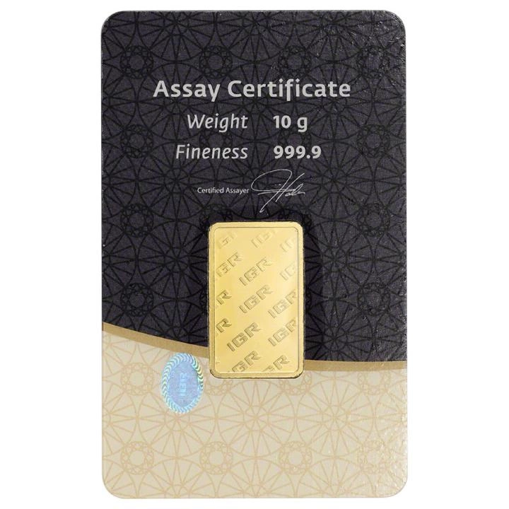 Sztabka waży 10 g i posiada próbę 999,9, co przekłada się na zawartość czystego złota na poziomie 99,99%. Awers zdobi precyzyjny grawer z logo IGR, oznaczenie próby oraz indywidualny numer seryjny, ułatwiający weryfikację oryginalności produktu. Gładka powierzchnia rewersu podkreśla minimalistyczny charakter sztabki, co sprawia, że doskonale komponuje się z innymi gramaturami w kolekcji.