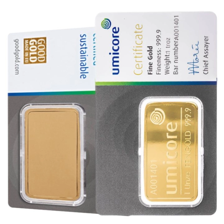 Złota sztabka od uznanej rafinerii metali szlachetnych Umicore to 1-uncjowa propozycja inwestycyjna, idealna do dywersyfikacji portfela. Wykonana z czystego kruszcu o próbie 999.9, dostarczana jest w certyfikowanym zabezpieczeniu CertiPack. Producent jest międzynarodowo rozpoznawalnym i akredytowanym podmiotem, działającym w zgodzie z najwyższymi standardami jakości, bezpieczeństwa oraz produkcji złota, co gwarantuje maksymalną wiarygodność i wysoką jakość inwestycyjną wyrobów.