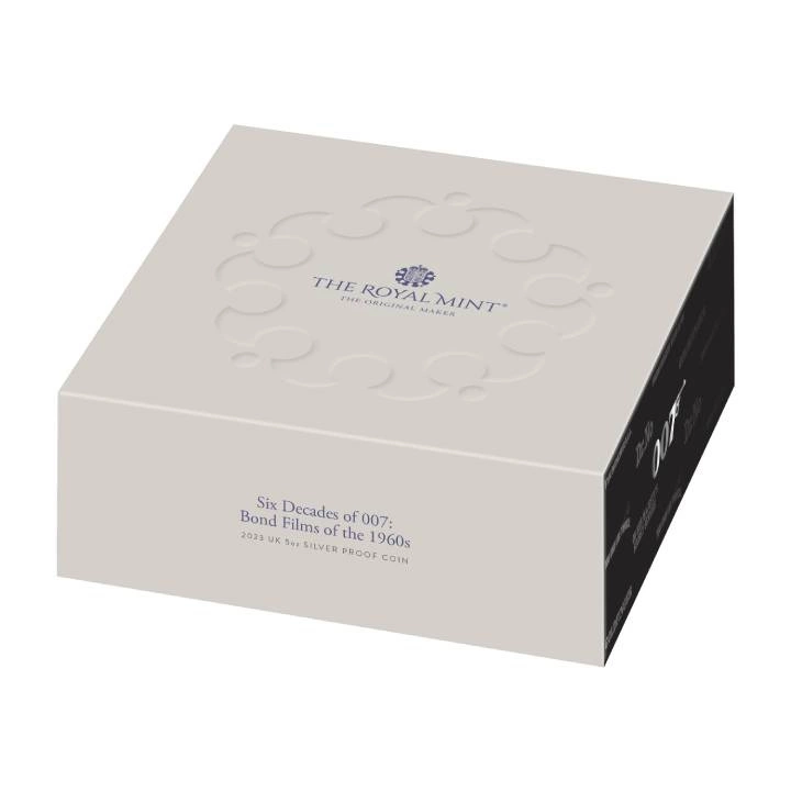 Bond Films of the 60s 5 uncji Srebra 2023 Proof to moneta, która świętuje niesamowite dziedzictwo tej ponadczasowej postaci. James Bond zajmował ważne miejsce w popkulturze lat 60. XX wieku i zapisał się w historii jako jedna z najważniejszych osobistości dekady.