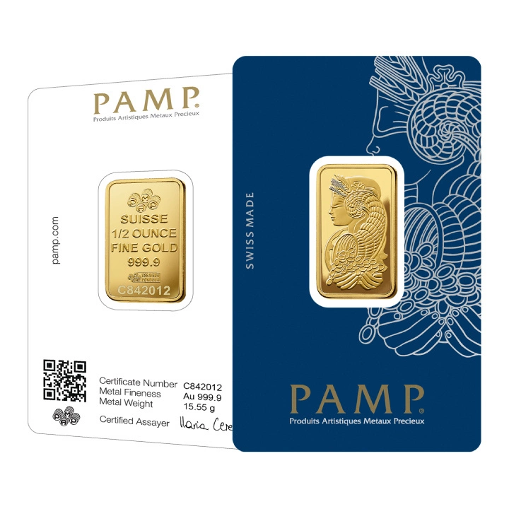 Złota sztabka od uznanego producenta metali szlachetnych PAMP to propozycja inwestycyjna o masie 1/2 uncji, świetna do dywersyfikacji portfela. Wytworzona z czystego złota o próbie 999.9, dostarczana jest w certyfikowanym zabezpieczeniu – CertiPack. Producent posiada międzynarodowe akredytacje i spełnia najwyższe standardy wytwarzania złota, co zapewnia jego wyrobom najwyższą możliwą gwarancję jakości.