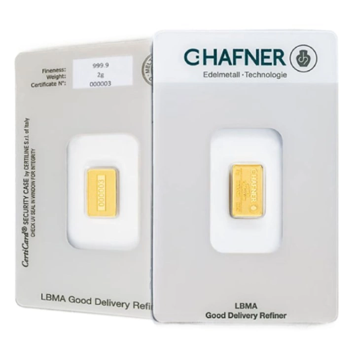 Każda sztabka waży 2 g przy próbie 999,9, co potwierdza 99,99% czystości złota. Awers prezentuje wyraźne logo C.HAFNER, informację o próbie oraz indywidualny numer seryjny, co pozwala na szybką weryfikację autentyczności. Powierzchnia sztabki została poddana specjalnej strukturze antymanipulacyjnej – ewentualne próby zmiany wyglądu pozostawiają trwałe ślady, uniemożliwiające ukrycie jakichkolwiek modyfikacji.