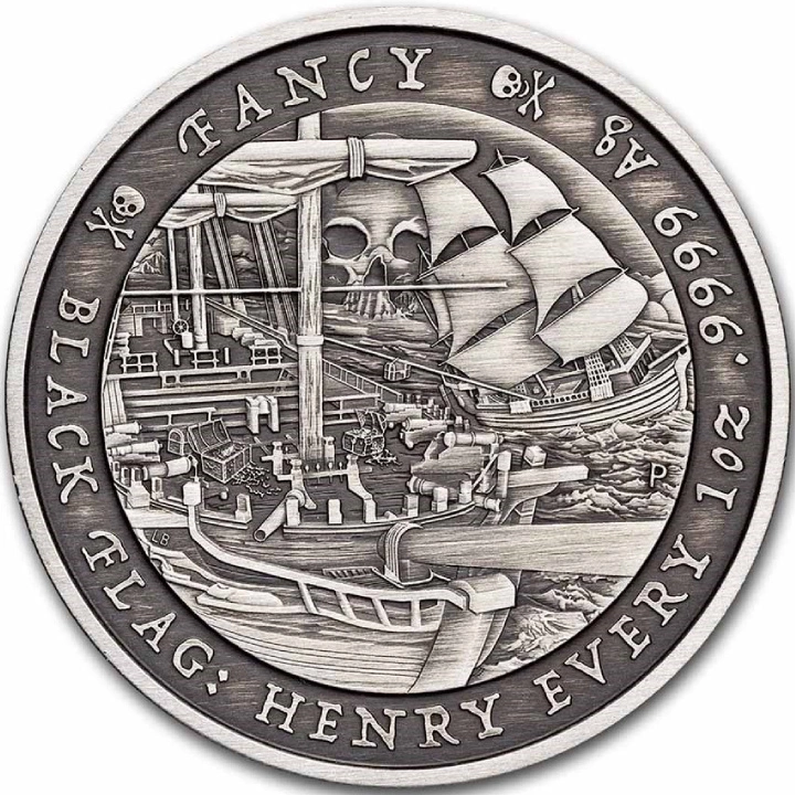 Rewers ukazuje statek Fancy. Na pokładzie statku znajduje się mnóstwo skrzyń pełnych monet i klejnotów. Na rewersie znajdują się także napisy: "FANCY", "BLACK FLAG: HENRY EVERY", oraz informacje o wadze i czystości kruszcu. Dodatkowo został wygrawerowany znak menniczy The Perth Mint, w postaci litery „P”.