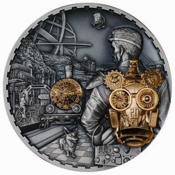Cook Islands: Steampunk – Jet Pack pozłacany 1000 gramów Srebra 2023 Ultra High Relief Antiqued Coin