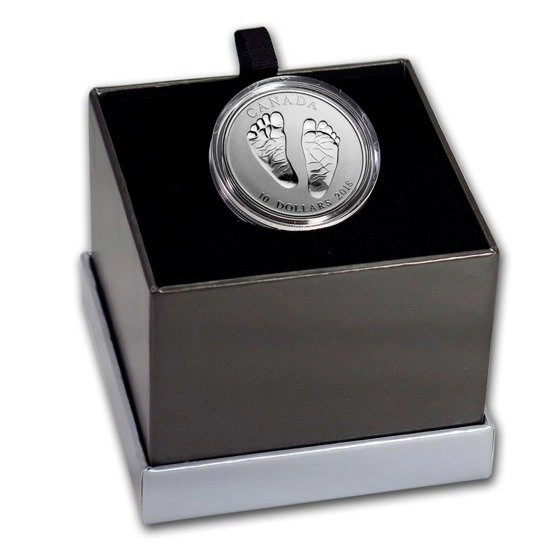 Rewers: Na rewersie monety umieszczono subtelny wizerunek małych stópek dziecka, który symbolizuje nowe życie i początek rodzinnej historii. Dodatkowo, na tej stronie znajduje się nominał 10 dolarów, podkreślający oficjalny status monety.